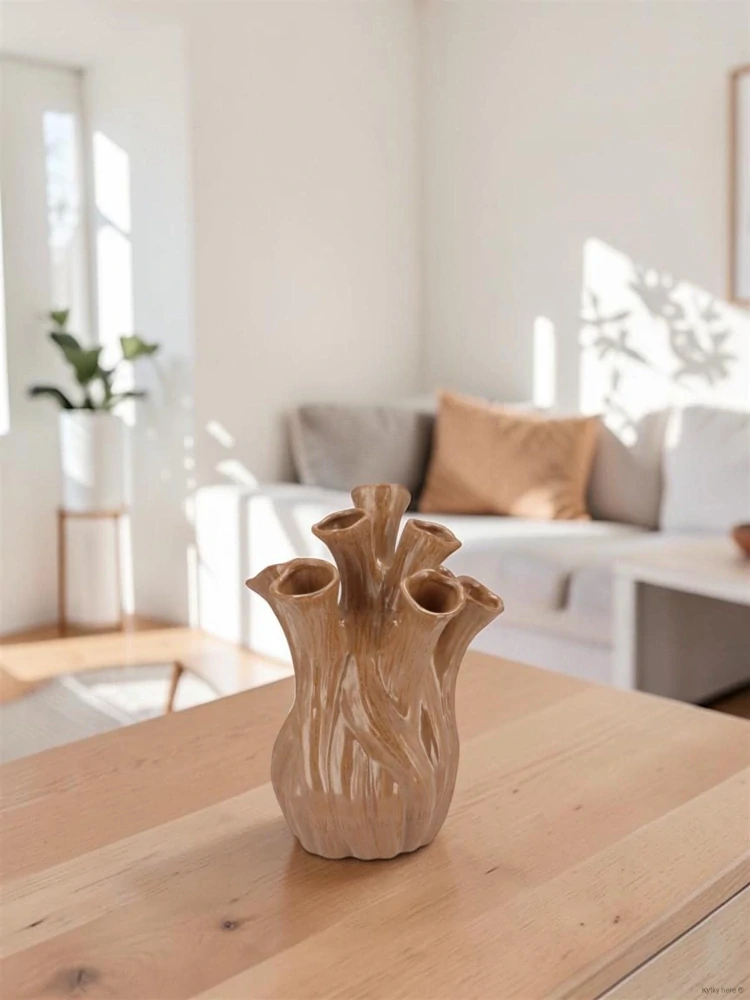 Náš tip: Váza nejlépe vynikne na dřevěném konferenčním stolku nebo komodě, kde její organický tvar krásně kontrastuje s čistými liniemi moderního nábytku.