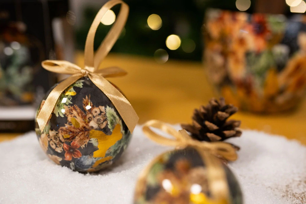 Vánoční baňky z kolekce Lammie přinášejí do domova jemnost, barvy a eleganci květin. Každý kus je originál s květinovým motivem a zlatou stužkou na zavěšení. Ideální jako vánoční dekorace, dárek nebo ozdoba na stromek.